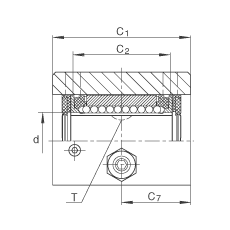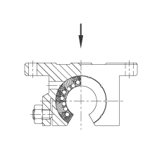 - 在主載荷方向的基本額定載荷; 基本額定載荷僅適用于淬硬(670+170 HV)及磨削過的作為滾道的軸 根據(jù) ISO/CD 14 728-1 的基本額定載荷(最大值)