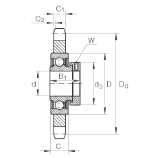 - 鏈傳動(dòng)惰輪輪齒單元作為組合型號(hào)的例子 KSR15-B0-06-10-20-08 KSR 鏈傳動(dòng)惰輪輪齒單元 15 軸承內(nèi)徑 B0 帶偏心套的外球面球軸承, 系列 RAE..-NPP 06 惰輪節(jié)圓 1/16