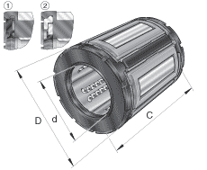 - 基本額定載荷僅適用于淬硬(670+170 HV)及磨削過的作為滾道的軸 基本額定載荷根據 ISO/CD 14 728-1 (最小值)