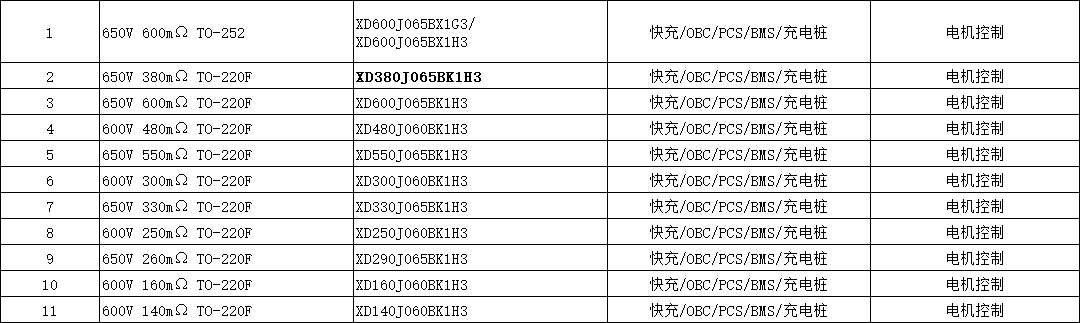 XD380J065BK1H3 芯達茂,SJ Mos管  650V 380mΩ TO-220F  快充/OBC/PCS/BMS/充電樁