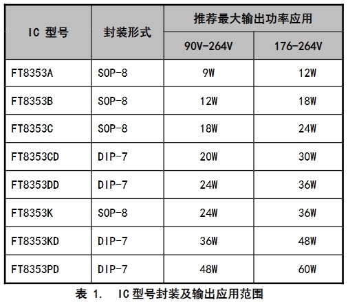 FT8353x系列共有多種型號,每種型號針對不同的輸出功率范圍和封裝形式進行了優化,以滿足多樣化的LED照明應用需求。具體型號及其特點如下: