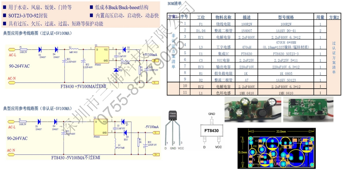 SOT23-3/TO-92封裝,低成本Buck/Buck-boost結構,內置高壓啟動,啟動快,動態快具有過壓、欠壓、過流、過溫、短路等保護功能。用于水壺、風扇、飯煲、門鈴等。