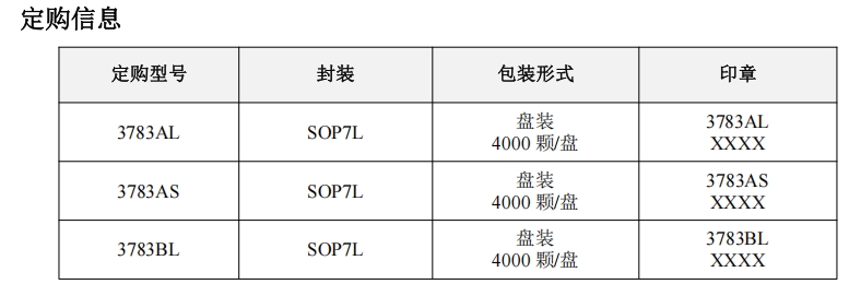 3783AL、3783AS和3783BL芯片的主要區別在于其設計的功率等級。3783AL適用于10W的功率應用,而3783AS和3783BL則適用于15W的功率應用。這意味著在選擇芯片時,需要根據具體的應用需求和功率要求來選擇合適的型號。例如,對于一些低功率的適配器或小型充電器,3783AL可能是一個更合適的選擇;而對于需要更高功率輸出的應用,如一些中等功率的LED驅動電源或較大功率的充電器,3783AS或3783BL可能更適合。