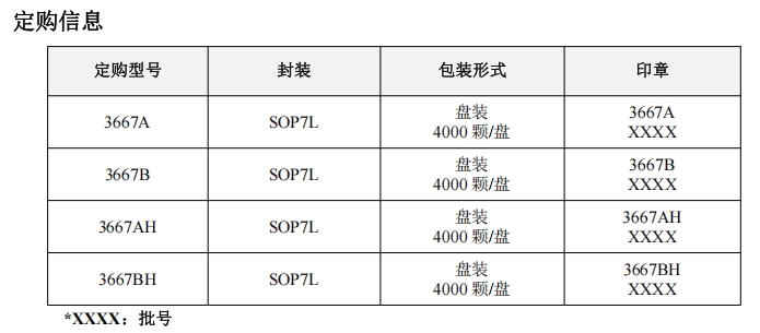 3667系列芯片包括3667AH、3667A和3667B/BH等型號,它們在一些關(guān)鍵參數(shù)和應(yīng)用場景上存在差異,具體如下: