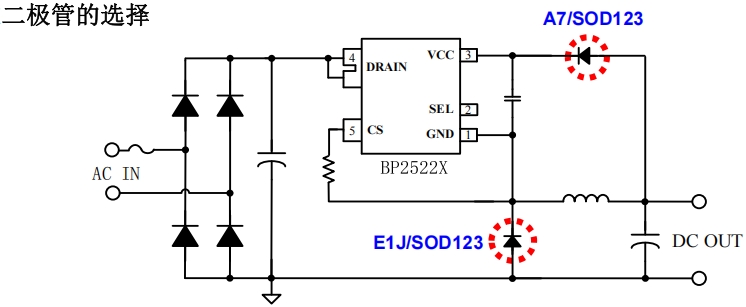 Vout電壓與續流二極管的正向壓降(Vf)和供電二極管的Vf有關,尤其是重載下,續流二極管上的壓降損失較多會導致調整率變差。續流二極管推薦選用GPP工藝、42mil、ES1J超快恢復二極管;Vcc二極管推薦選用M7或A7。