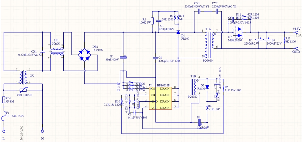 在現(xiàn)代家用電器市場中,電源適配器的效率和穩(wěn)定性至關(guān)重要。今天,我們將深入剖析一款基于 BP86216P 的 12V2.5A 電源方案,其實(shí)測效率超過 85%,堪稱 30W 功率段的“小鋼炮”。