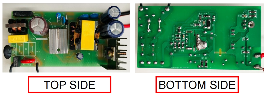 從實(shí)物圖可以看出,BP86216P 的電路板設(shè)計(jì)簡潔明了。所有元件均采用貼片工藝,確保了生產(chǎn)的高效性和一致性。變壓器和電解電容的體積適中,能夠適應(yīng)大多數(shù)小型電源適配器的外殼。