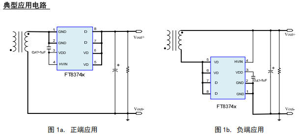 FT8374系列支持 正端與負端兩種整流方式,可靈活適應不同變壓器結構與輸出極性要求。