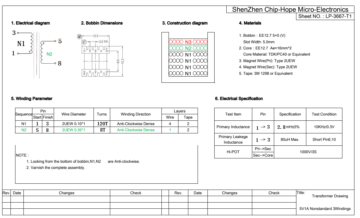 LP3667AH雙繞組2.5W隔離型LED電源方案(原理圖及變壓器資料)