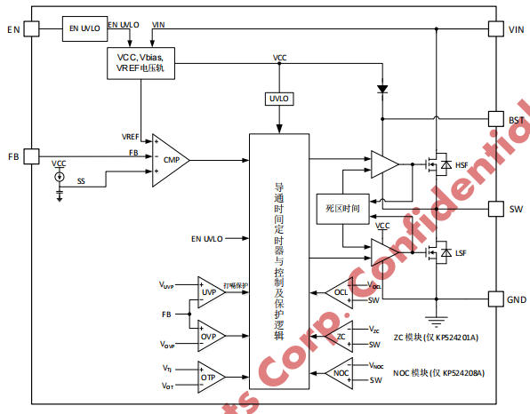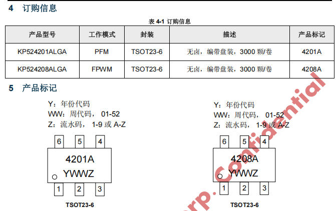 | KP524208A | FPWM | 強制連續模式,固定頻率,低紋波,適合通信/邏輯供電 |