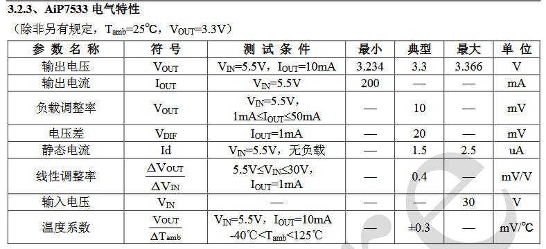 AiP75XX 家族共有 7 位成員:2.5 V、3.0 V、3.3 V、3.6 V、4.0 V、4.4 V、5.0 V,后綴“33”即代表 3.3 V 固定輸出。全系采用 30 V 高壓工藝,壓差僅 20 mV@1 mA,靜態電流 1.5 μA,堪稱“電池供電界的細水長流”。