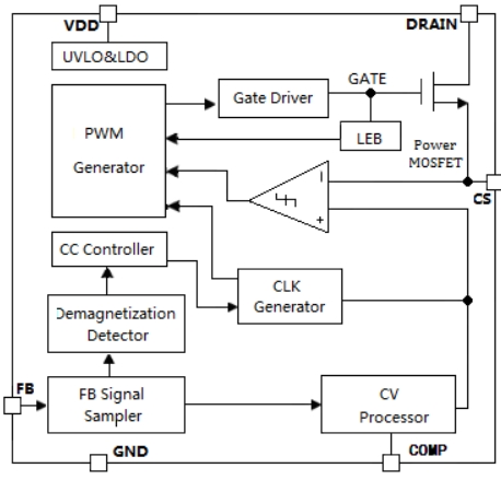 • 恒流:CS 中心點電壓 × 退磁占比 = 固定常數,實現 ±5% 精度