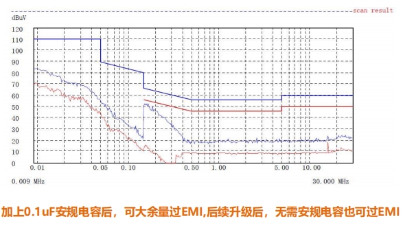 YD925在半波整流+0.1μF電容條件下即可通過EMI測(cè)試,無(wú)需額外共模電感,進(jìn)一步壓縮成本和體積。