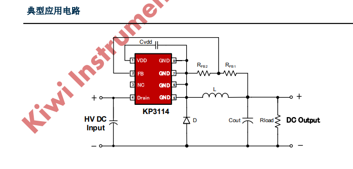 KP3114 是一款高性能低成本 PWM 控制功率開關,適用于離線式小功率降壓型應用場合,外圍電路簡單、器件個數少。同時產品內置高耐壓 MOSFET 可提高系統浪涌耐受能力。