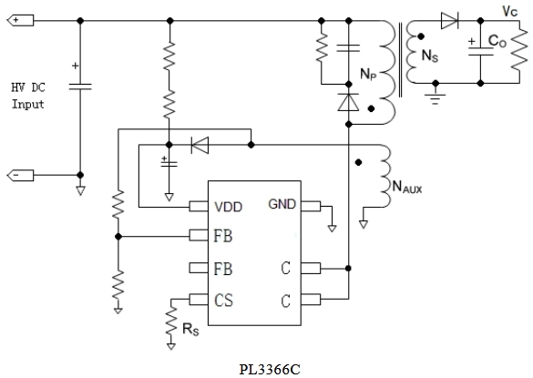 PL3366C是一款原邊控制,用于反激式開關電源的恒流/恒壓調節器。其高度集成了功率開關,并通過去除光耦以及次級控制電路,在簡化充電器/適配器等傳統的恒流/恒壓設計的同時實現了精確的電流和電壓調節。