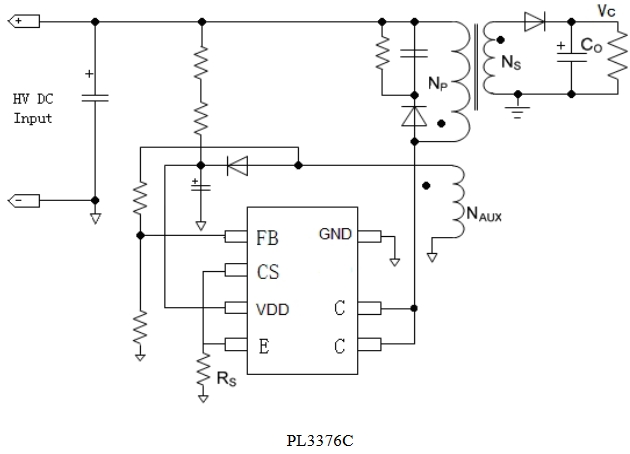 PL3376C 同時具有多種保護功能:逐周期峰值電流檢測、VDD 欠壓/過壓保護、輸出過壓保護、輸出短路保護和過溫保護等。