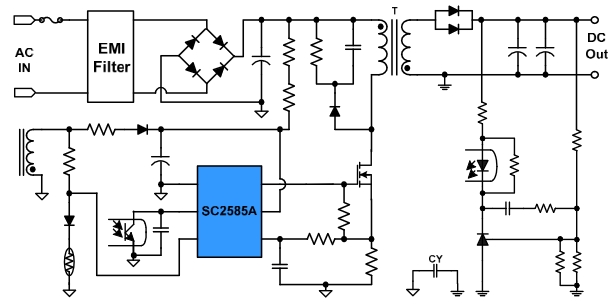 SC2585A 是一款應(yīng)用于 65W 的電流模式 PWM 電源控制芯片。SC2585A 采用多模式加
