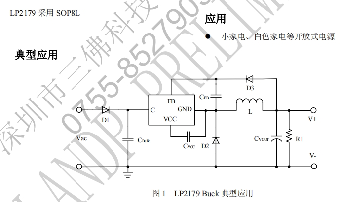 LP2178是一款高效率、高精度的非隔離降壓開(kāi)關(guān)電源恒壓控制驅(qū)動(dòng)芯片。它適用于85VAC至265VAC全范圍輸入電壓,尤其適用于小家電、白色家電等電源的驅(qū)動(dòng)。LP2178內(nèi)部集成高壓功率管,并采用恒壓控制模式,系統(tǒng)可工作于CCM和DCM模式。它還具有多重保護(hù)功能,包括VCC鉗位/欠壓保護(hù),輸出短路保護(hù)、電感過(guò)電流保護(hù)及過(guò)溫保護(hù)等。
