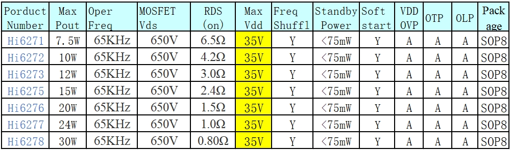 HI628系列是另一款大宏成的電源管理芯片,功率10W-42W,封裝均為DIP8。以其在高功率應用中的穩定性和效率而受到青睞。這款芯片適用于多種高要求的電源轉換場景,包括但不限于工業控制和高端家電。