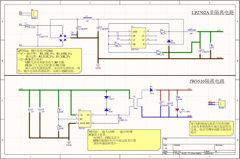 安全可靠:結合LP2702A和JW3510,可以實現短路保護和過流保護功能,當負載過大時,電源會出現間歇性通斷的異常狀況,保護電路不受損害。
