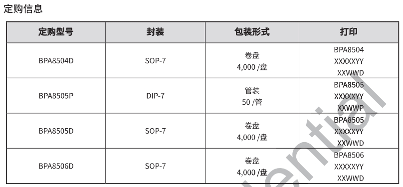 BPA8506D系列芯片的技術(shù)規(guī)格如下: