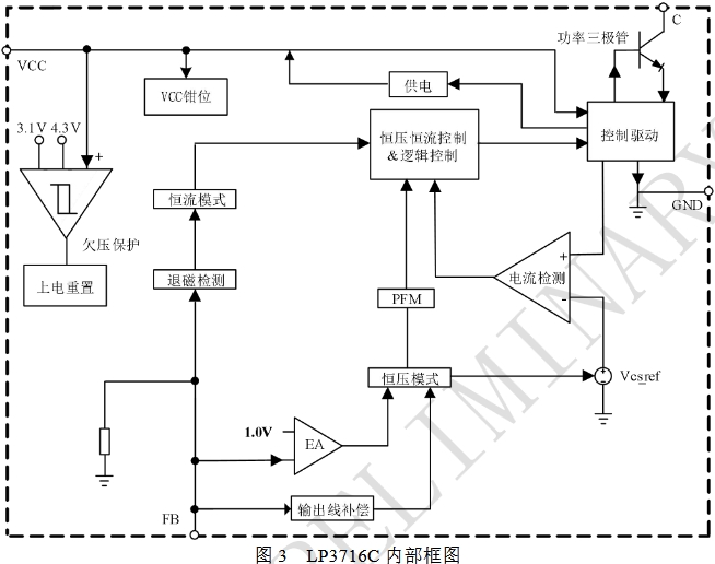 LP3716C是一款集成了BJT的電源管理芯片,適用于12W以下的隔離方案。它具備內置啟動電路、高精度的固定峰值電流、輸出線損補償技術、輸出短路保護、過壓保護、VCC欠壓保護、FB腳上電阻開路保護以及過溫保護等多種功能。