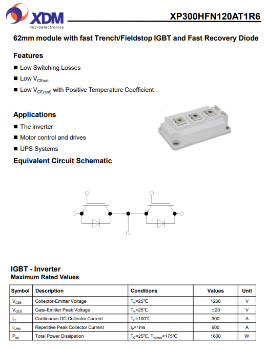 XP300HFN120AT1R6 芯達茂 國產IGBT 功率模塊 300A 1200V 62mm