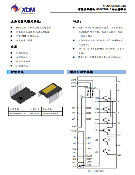 XP20G60AS0-CJCG 智能功率模塊 600V/20A 3 相全橋驅(qū)動(dòng)