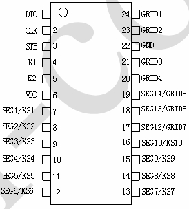 數(shù)據(jù)傳輸:通過DIO、STB和CLK三條線實現(xiàn)與外部控制器的數(shù)據(jù)傳輸。DIO線上的數(shù)據(jù)在STB線的上升沿被鎖存,CLK線提供時鐘信號控制數(shù)據(jù)的傳輸節(jié)奏。