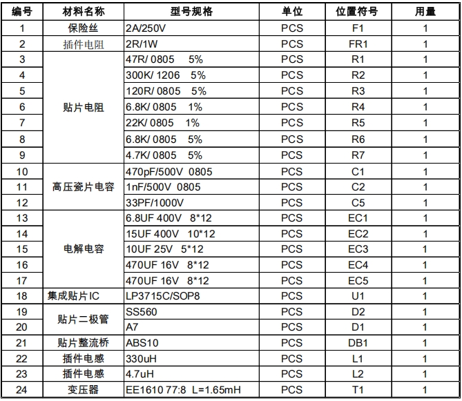 LP3715C:作為PWM控制器,負責(zé)調(diào)節(jié)輸出電壓和電流。