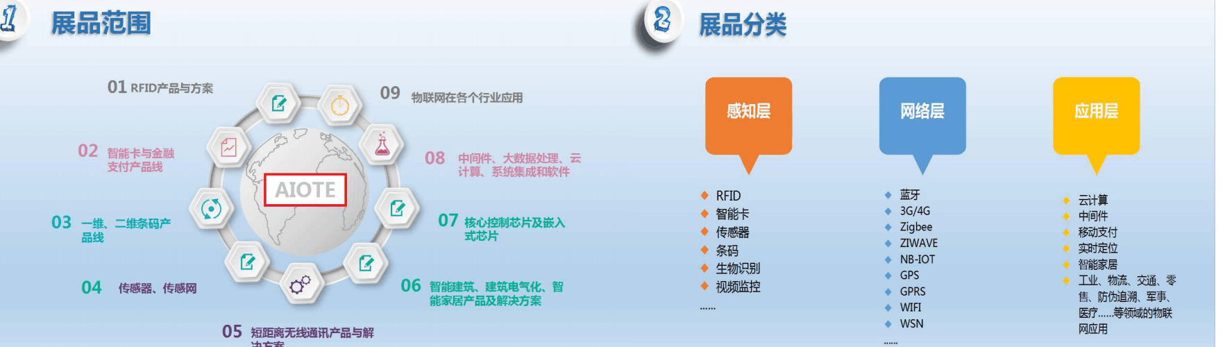 網(wǎng)絡(luò)層:通信技術(shù)、通訊模組產(chǎn)品、核心控制芯片、嵌入式芯片、云計(jì)算、大數(shù)據(jù)、物聯(lián)網(wǎng)云平臺(tái)、網(wǎng)絡(luò)與信息安全、物聯(lián)網(wǎng)地址編碼等;