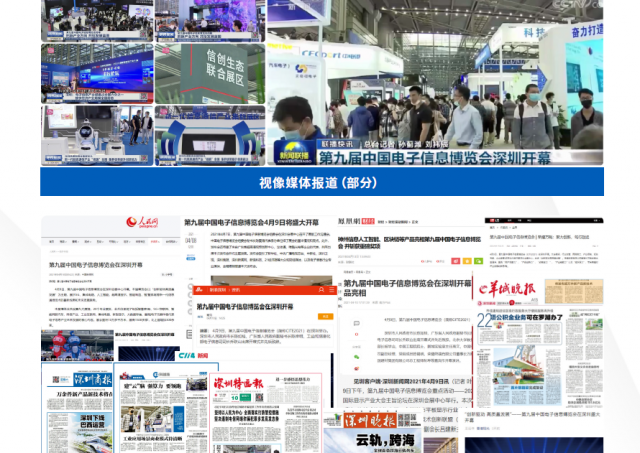展會得到各界媒體的關注與多方報道,其中包括:中央電視臺、深圳衛視、深圳都市頻道等電視臺持續多天的追 蹤報道;中央人民廣播電臺、深圳廣播電臺等進行焦點播報;同時,還有來自中國電子報、經濟日報、南方都市報、晶 報、深圳商報、深圳晚報、深圳特區報、香港文匯報、香港商報等重點報紙媒體和新華社、央廣網、中國網、搜狐網、鳳 凰網、騰訊、網易、新浪等主流網站以及中華顯示網、海外網、CINNO、前海傳媒、新材料在線、中國企業網、數字標牌 網、每日科技網、C114、計世網、中關村商情網、中華網科技、飛象網、賽迪網、科技世界網、天極網等專業媒體紛紛就 展會最新消息進行了前后數月的專題報道。