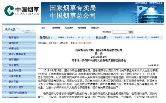 今年11月1日,國家煙草專賣局、國家市場監督管理總局對外發布了一則禁令,要求不得向未成年人銷售電子煙,不得通過互聯網銷售電子煙,不得通過互聯網發布電子煙廣告。電子煙網絡禁令一發布,各大電商平臺和網絡店鋪紛紛開始下架電子煙,一時有關電子煙的各種消息在網上傳播開。