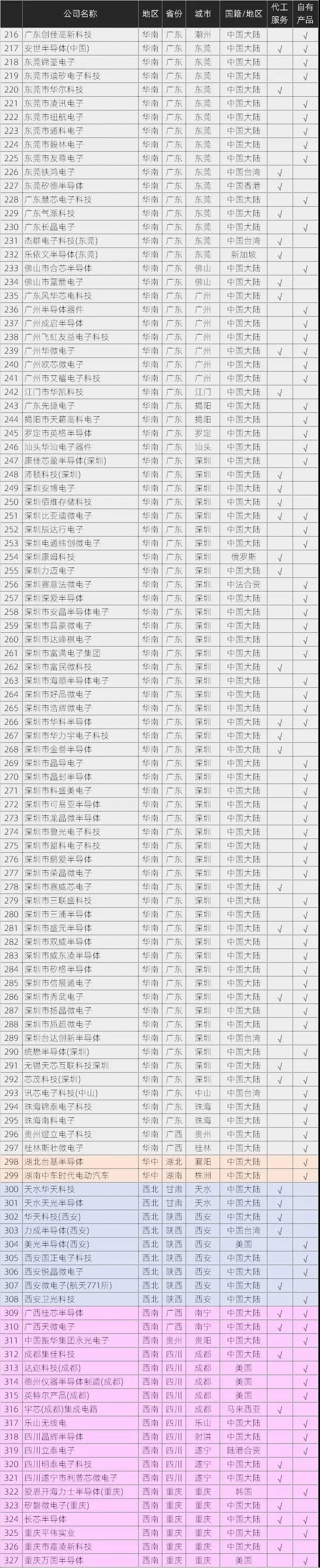 本次統計(截止到2019年末)共收錄了大陸境內共327家封裝生產線的(包含代工線和自主產品線)詳細數據。